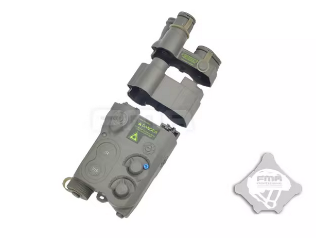 FMA AN/PEQ-16スタイル バッテリーボックスは、 AN/PEQ-16 IPIMバージョンをベースに設計されており、外観はオリジナルデザインに忠実です。約1200mAh以上のバッテリーパックを収納できる広々とした内部スペースを備え、背面には専用のコンセントを備えています。ピカティニーレールに対応し、ステッカーが付属しています。最大96×20×27mmのバッテリーを収納できます。