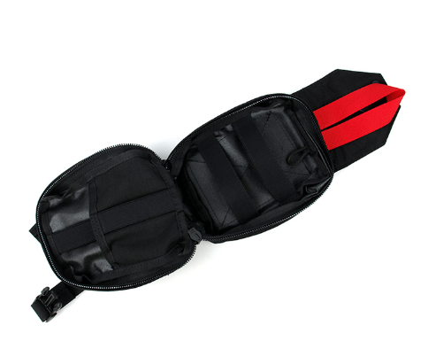 TMCのスモールサイズ・メディカルポーチは、個人用救急キットの現行基準を凌駕する先進的な設計です。一刻を争う状況では、標準的な外傷用機器へのアクセスが困難になることがあります。なぜなら、ほとんどのポーチは負傷者のベストやリュックサックに装着されたままだからです。当社のメディカルポーチの最も革新的な特徴は、MOLLE対応の裏当てから瞬時に取り外し、状況に応じて単独で使用できることです。つまり、負傷者を土の中で転がしたり、ポーチの中身を外に出して処置に取り掛かったりする必要がありません。このポーチがあれば、命が助かるかもしれません!このポーチは、クラムシェル型のジッパーデザインで、内側には伸縮性のあるウェビングが施されており、外傷用機器を整理整頓できます。また、小物用の内側スロットポケットも備えています。TMCのスモールサイズ・メディカルポーチは、支給されるIFAK(救急救命キット)の中身すべてに加え、それ以上のものを収納できます。ポーチには赤いハンドルが付いており、中身が救命用機器であることを容易に識別できます。使用しない時は、ハンドルをポーチとMOLLEバックパネルの間に完全に収納できます。さらに、タイダウン用のコードループと排水用のグロメットも備えています。