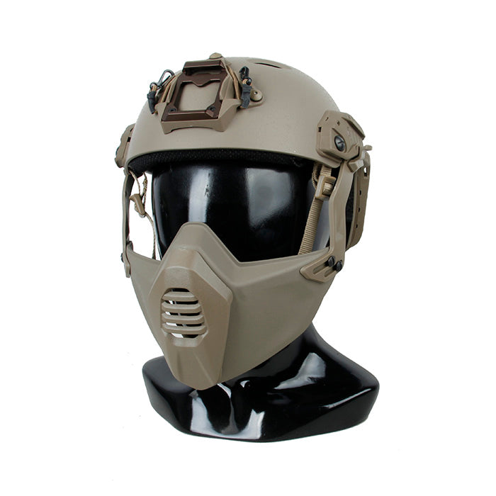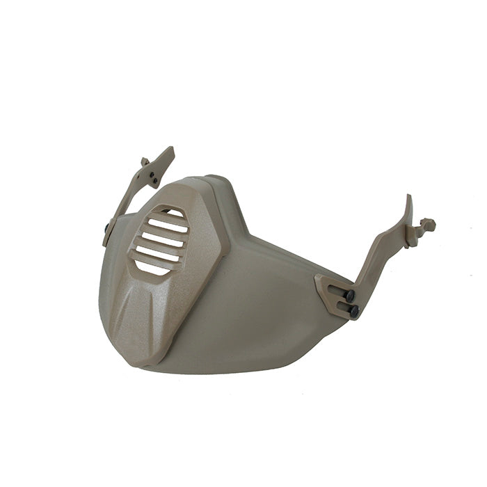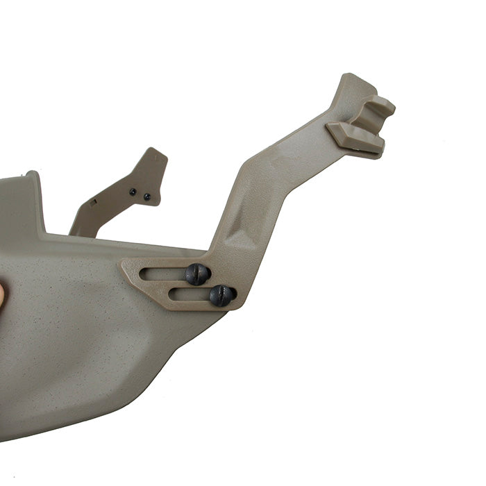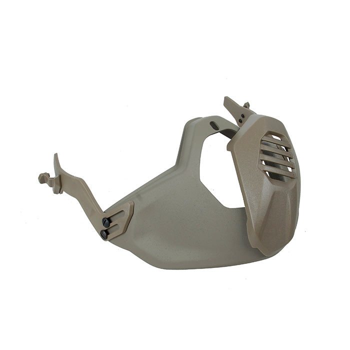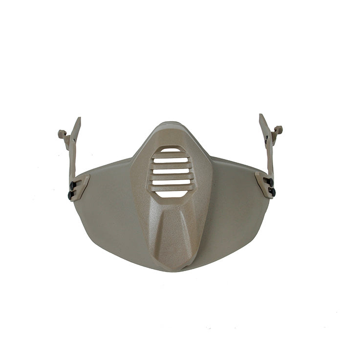 TMCのSFヘルメット用軽量ポリマー保護マスクは、高品質のポリマー素材で作られています。専用のヘルメットレールを備えたSFヘルメットにのみ適合します。調整可能なフリーサイズです。可動式の保護マウスシールドを備えており、休憩や水分補給の際に開けることができます。