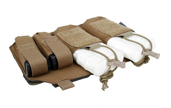 TMC 카이덱스 플레이트 캐리어용 더블 5.56mm 및 9mm 탄창 파우치는 고품질 코듀라 원단과 스트레치 원단으로 제작되었습니다. 가벼운 무게감과 M4 시리즈 탄창 2개와 9mm 권총형 탄창 2개를 수납할 수 있습니다. TMC 카이덱스 프레임 캐리어와만 호환됩니다.