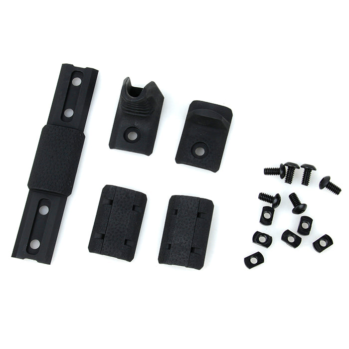 이 TMC M-Lock 핸드 스톱 세트는 가볍고 낮은 프로파일의 M-Lock 슬롯 인덱스 포인트로 무기 제어력을 향상시키거나, 사수의 손이 핫 프론트 가늠자 어셈블리나 총구에 닿는 것을 방지하는 전방 스톱 역할을 합니다. 이 세트에는 M-Lock 핸드 스톱 1개, M-Lock 인덱스 패널 1개, 그리고 M-Lock 레일 커버 타입 2 2개가 포함되어 있어 사용자가 원하는 대로 키트를 구성할 수 있습니다. 또한, 이 세트에는 M-Lock이 장착된 폴리머 핸드 가드 또는 포엔드, 그리고 다른 더 넓은 프로파일의 알루미늄 핸드 가드와 함께 사용할 수 있는 어댑터가 포함되어 있습니다.