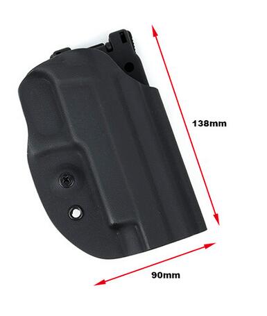 This TMC Standard Kydex Holster is a Heavy Use, Precision Formed, Modular Kydex Holster. The TMC Standard Kydex Holster features a fold/wrap design with Adjustable Pro-Safe Tensioning. Setting the standard for what a Kydex holster should be: a safe, functional, superior fit holster that won't break the bank. This is our most popular holster, and can be used with all of our accessory mounting adapters. It is compatible with Marui P226 pistol.