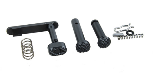 This BJ TAC G Style Steel AEG Pin and Mag Release Set is made of high strength steel material. It has matte black finish on its surface which made it more durable. It features G style appearance and compatible with M4 series AEG rifle.