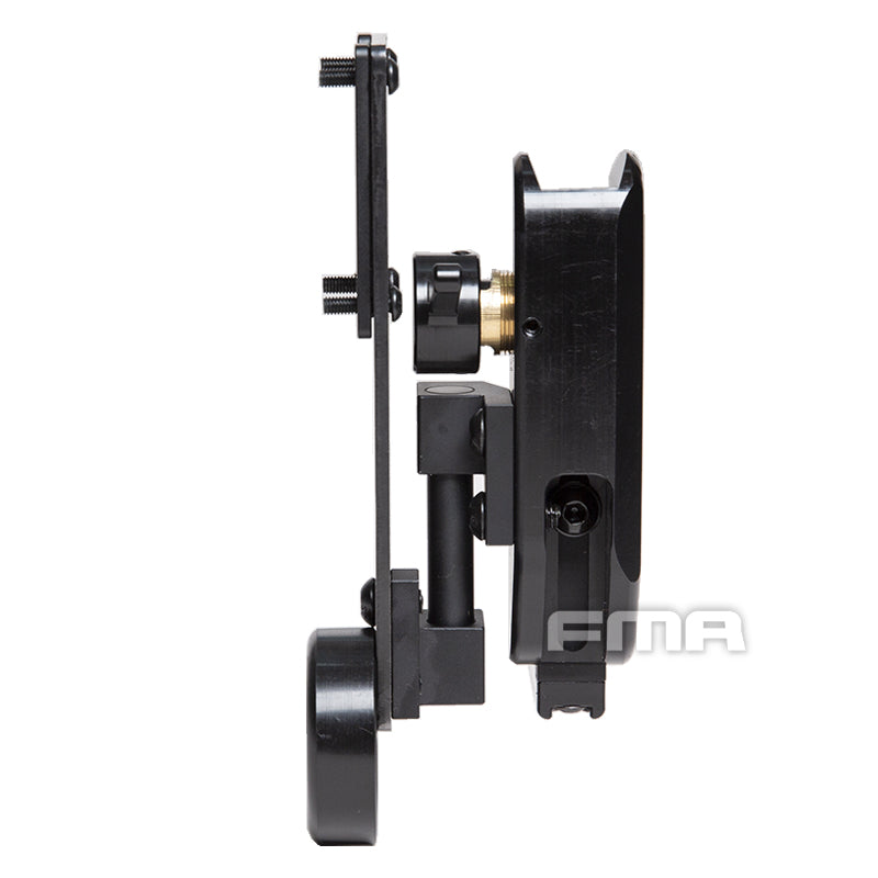 This is the first professional quickdraw launched by FMA for competitive use. This quickdraw has adjustable versatility that fully meets the needs of competitive matches. It complies with competition rules in terms of locking stability, with a locking mechanism operated by the thumb. The angle is also adjustable, and the adjustment of the adjustable parts is very convenient. Changing and adjusting parameters only requires an Allen wrench. Additionally, this quickdraw supports left-handed use, and the relevant accessories can be installed in reverse.