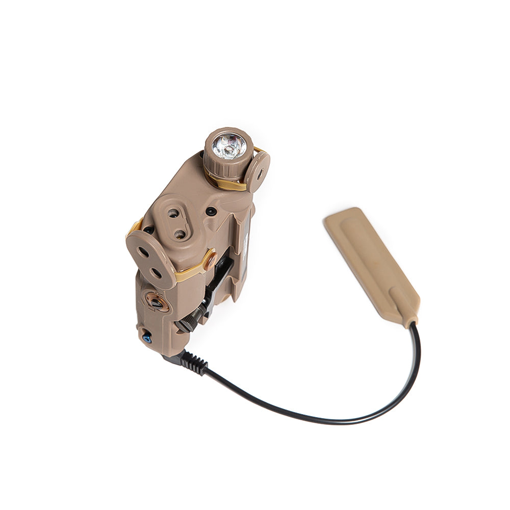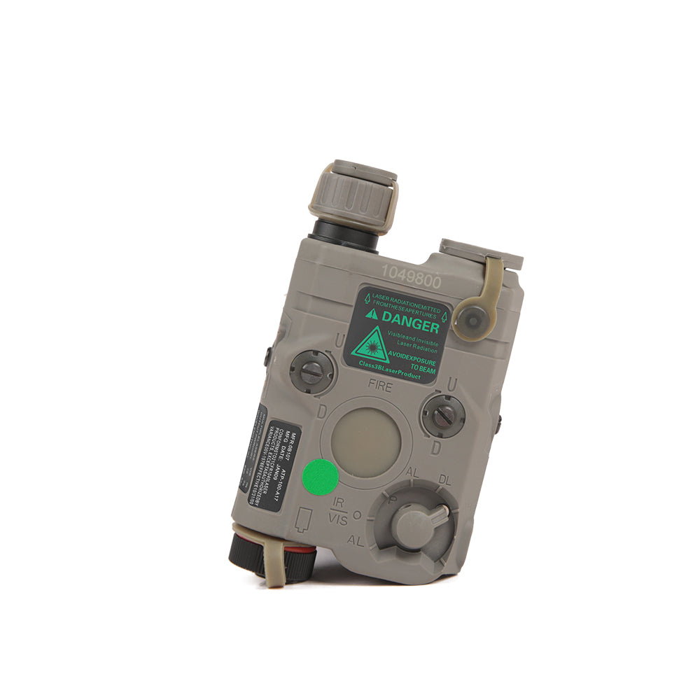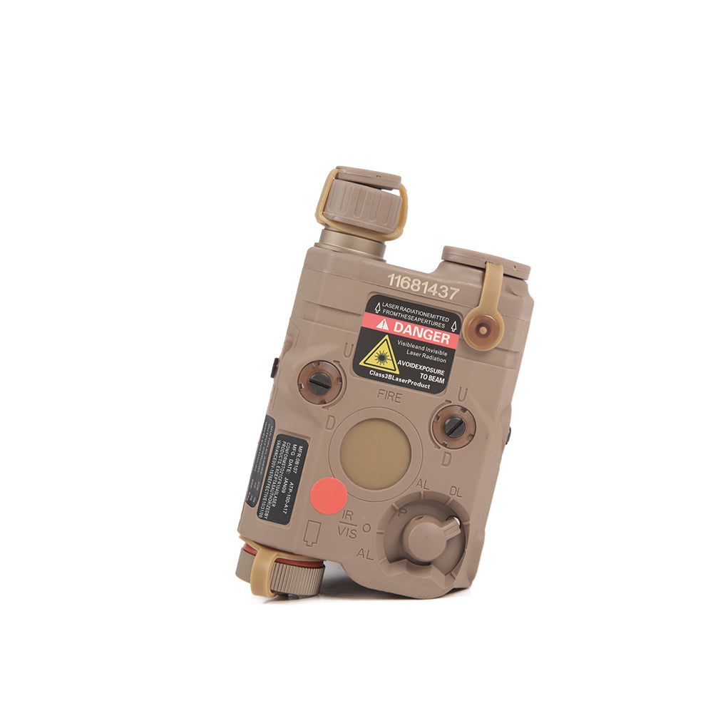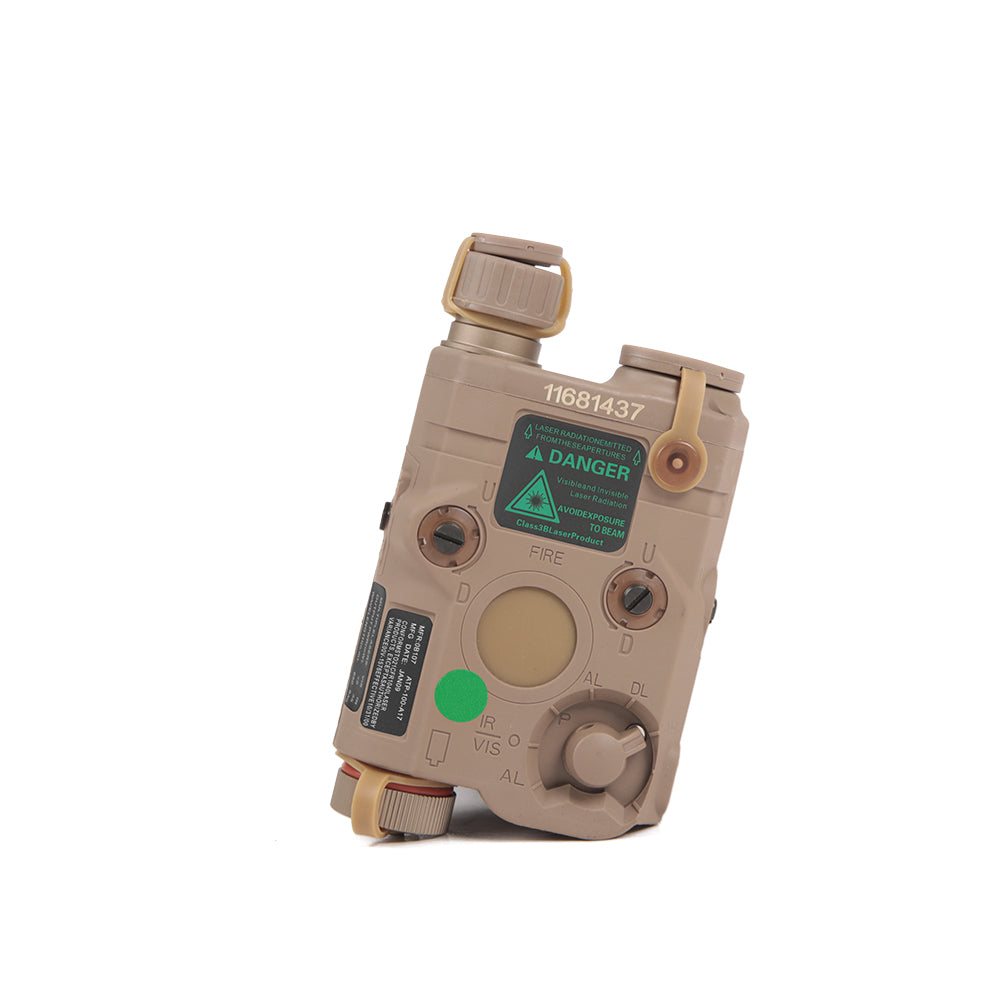 l The FMA AN/PEQ 15 functional version launched by FMA offers three functions in addition to its finely replicated appearance. These functions include red/green laser, IR invisible laser, and LED white light. The visible laser and invisible laser are coaxial, which is consistent with the original product's functionality. The provided LED white light reaches 40 lumens (lm), satisfying the needs of players who require functionality. It is also suitable for players who have a demand for aesthetics, as the external details are finely replicated, faithfully reproducing all the details of the prototype, and the operation method is consistent with the original product. The bottom supports standard Picatinny rails. The shell is made of high-strength nylon and can be powered by two 3.0v or 3.7V batteries (not included, need to be purchased separately). Stickers are included.