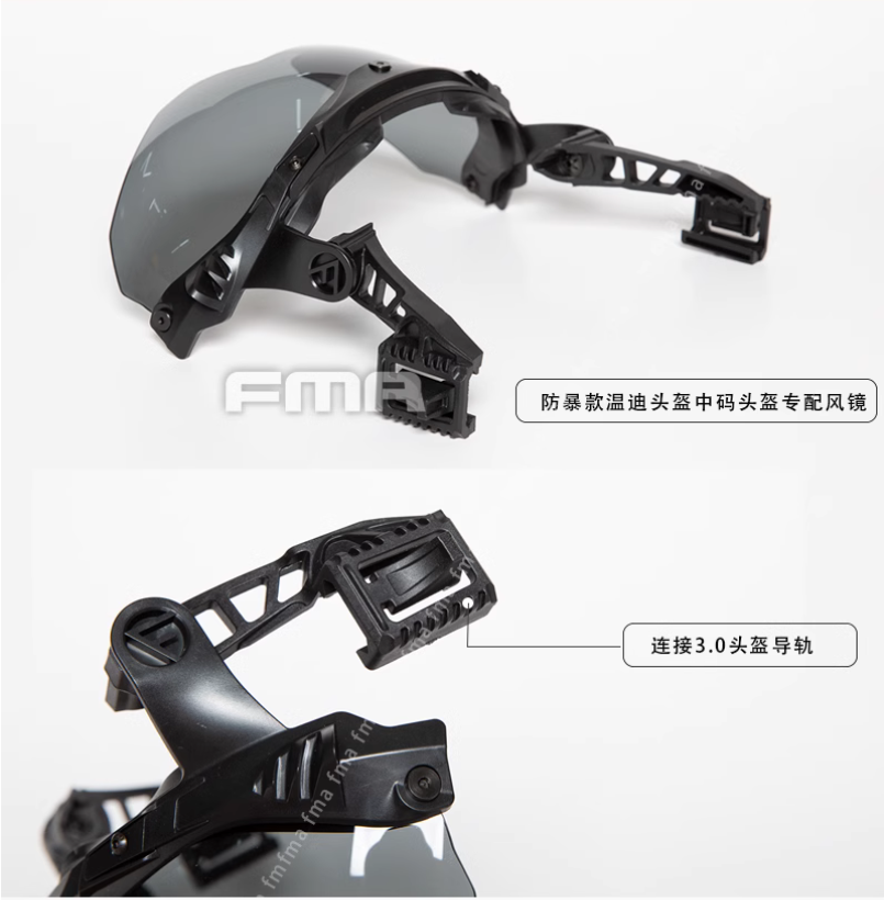 FMA has launched the FMA EX ballistic wind goggles, which are only compatible with EX Carbon/LTP and Ballistic 3.0 rails. The protective level meets ANSI requirements and partially meets the protection requirements of MILSPEC, as well as the optical and protective requirements of BS EN 166. It has been tested to withstand direct shots from a 12-gauge bullet within 5 meters.