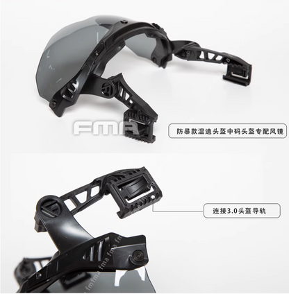 The design of the FMA EX ballistic wind goggles is based on the need for facial protection, especially against fragment impacts. When paired with these goggles, users can adapt to more complex mission scenarios. Furthermore, the installation of these FMA EX ballistic wind goggles does not interfere with the installation of other accessories, and they are fully compatible with devices such as NVGs and headphones. In particular, when used in conjunction with the EX series full-face protective mask, they provide complete head protection.
