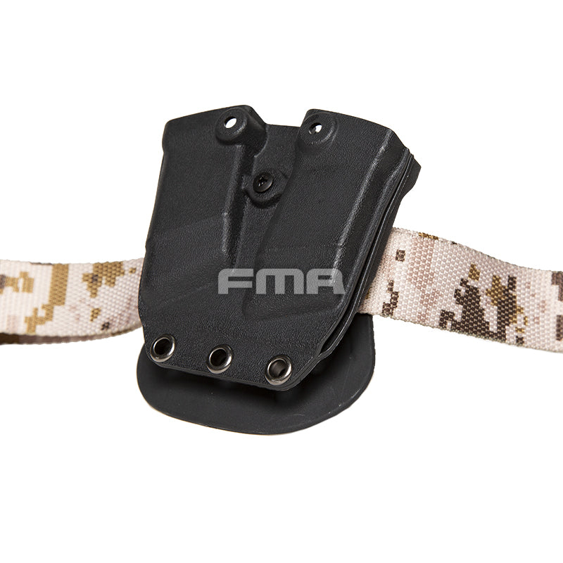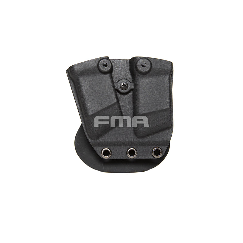 l For users who value cost-effectiveness and practicality, FMA has once again launched a Kydex material single/double magazine quick-draw holster. Firstly, this series of quick-draw holsters have adjustable side tension screws, allowing for fine adjustments according to user preferences. The top V-shaped opening greatly enhances smooth operation. Most importantly, this quick-draw holster can be used with both left and right hands, as users can adjust the installation direction of the back paddle belt buckle.