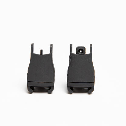 One feature of this product is that it can fold the front and rear sights flat and store them in a protective cover, effectively protecting the sights from damage caused by fragments and impacts. The front sight can be adjusted in height using a tool, and the rear sight has a two-piece aperture design. The large aperture is suitable for quick aiming, while the small aperture is suitable for precise aiming. The windage adjustment for the rear sight is done using a flathead screwdriver to avoid accidental adjustments that may affect accuracy. Made of high-quality polymer nylon, the structure is simple, lightweight, sturdy, and durable. It is compatible with Picatinny rails and provides a secure lock.
