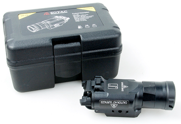 This Sotac X-Ray 300U Holster Flashlight now delivers a stunning 1,000 lumens of LED-generated output focused by a precision lens, creating a far-reaching high-intensity beam with a larger center spot that offers the power to positively identify threats at significant distances while temporarily impairing an adversarys vision. This intense beam also provides extensive peripheral illumination for maintaining situational awareness. The rugged Sotac X-Ray 300U Holster Flashlight with its T-slot thumbscrew clamp attaches securely to the Universal and Picatinny rails (fitting more models than ever before) found on most handguns. And Its light head feature unique construction for Sotac Mars Fire Rapid Draw Holster. As always for this best-in-class model, it features integral one- finger ambidextrous momentary- and constant-on switching.