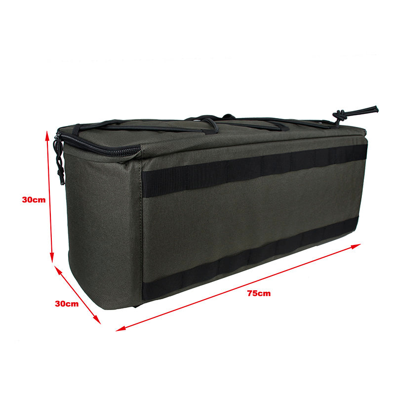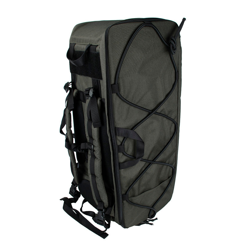 The Black Ships 75CM Moving Castle Deployment Pack was derived with the intention of giving an informed user the ability to carry the most essential pieces of equipment in the most manageable, mobile and low signature profile as possible. This unassuming bag is formed with the likeness of a hockey goaltender bag meant to carry oblong leg pads, bulky chest protector, blocker, glove and helmet. Concealed inside this design is an expansive main compartment, as well as a dedicated weapon housing compartment, all components needed for combative training or shooting sports. This bag is meant to look inconspicuous even to individuals who are familiar with typical military or tactical gear. The first impression should be a hockey bag, snowboard pack, lacrosse kit or mountaineering travel duffle. The Black Ships 75CM Moving Castle Deployment Pack replaces the cumbersome pair into an easy to carry, hands free and less threatening package. This bag contains a padded tubular main compartment indented to snugly retain and protect a modern equipped armor carrier, helmet, belt kit, footwear, and combative uniform. The body shape is designed to be easy to pack and access items while not giving unnecessary movement or orientation of items when transporting. The fully padded body housing reduces bump and damage to equipment while also minimizing printing of any contained items. The curved lines of the body lends itself to a more outdoor soft look instead of a hard edge, MOLLE strangled and Velcro covered military type bag. Hidden and balanced into the profile of the bag is a lockable rifle case. This section of the bag has generous closed cell foam padding to protect the contents and give no protrusion of any features to the concealed items. This pack is designed to stand upright when packed correctly to fit into commuter situations or allow you to stand in line at the ticket counter with ease. Ideal for a firearms class, airsoft weekend or always be prepared trunk. Weapons Compartment has internally anchored grommet points giving the user options to cable lock and secure the rifle, as well as a physical lock in place concept, to reduce the chance of your bag walking away. The top of the bag has 2 grommets to allow a cable lock to extend from the inside of the bag and secure to an anchor point when at a location to stop theft of the entire bag. Zipper closures allow for wide array of devices. 4 Cable grommets connect from the main compartment into the weapons compartment to add another layer of security from an attempt to add another layer of security from an attempt to access the contents of the weapons case. Multiple rigging methods and the ability to place a hard case into the weapons compartment make it an ideal airline bag.