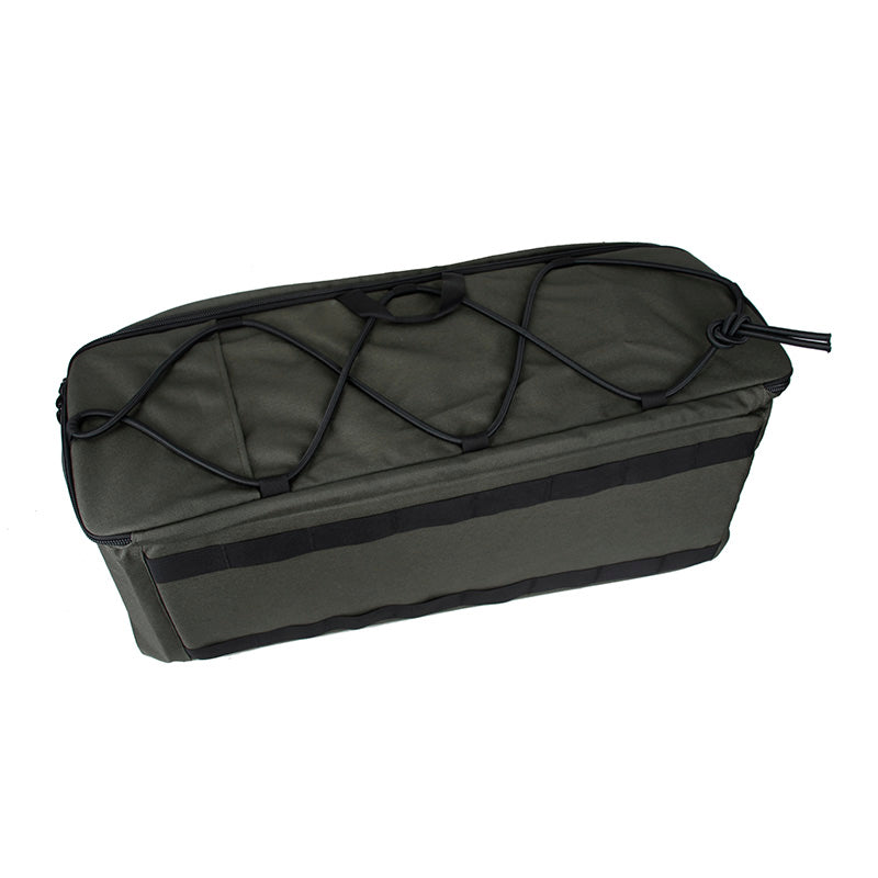 Main compartment zip flap is supplying the user an easy to access loop Velcro platform to attach dedicated pouches for small immediate need items such as gloves, batteries, optics and more