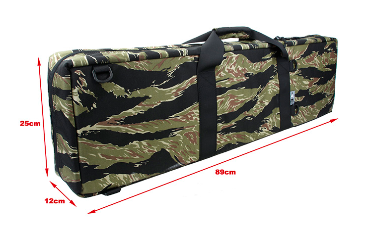 This The Black Ships Low Profile 90CM Easy Two Layers Gun Pack is made of high quality 500D Cordura fabric.It features two layers storage design with a removable foam padded plate. It has 6x hook retention and two large size loop platform for guns. 4-point D-Rings buckle outside for attach extra shoulder straps (Not included). It also features laser cut loop platform and nylon webbing handle for carrying. 90cm length is suitable for 14inch full size carbine.