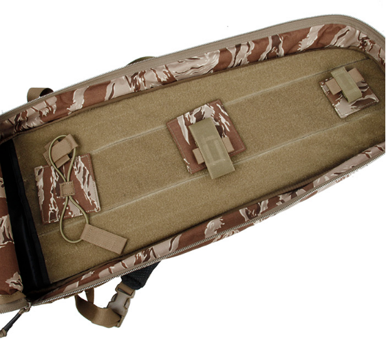 This The Black Ships Laser Cut Low Profile Full Length Rifle Backpack is made of high quality 500D nylon fabric. It features nylon handle on the top and side. The laser cut Molle platform outside can attach to pouches and loop platform can attach to patches. It has adjustable padded shoulder straps and padded back which can made it more comfortable. Hook and loop platform can hold one full 12 inch rifle or separately hold 16 inch rifle.