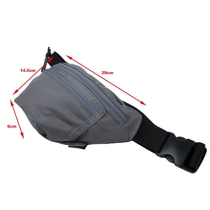 This TMC Nut Rick Tactical Waist Bag is the tactical twist on a hip fanny pack. It features a larger main compartment with two sleeved pouches to keep essentials separated. Main compartment also features a document pocket with hook and loop closure. An additional smaller low pro zipper pouch on the front and rear keeps all your quick need essentials handy. Great piece of kit especially for those that want blow out kit of a quick grab and go essentials pack at the ready. A small section of heavy duty elastic material on the buckle side of the waist strap allows for a small amount of stretch for easier breathing and movement.