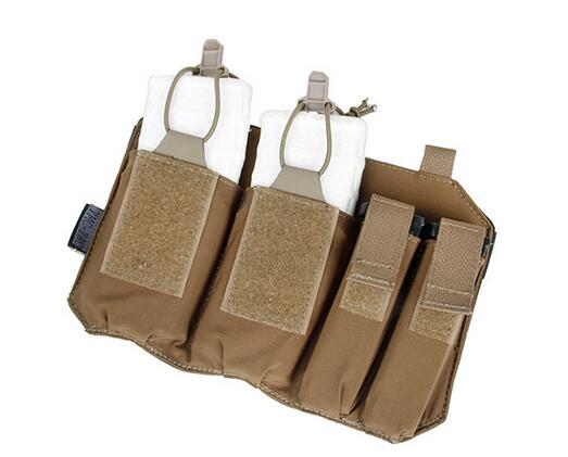 This TMC Double 5.56 and 9mm Mag Pouch for Kydex Plate Carrier is made of high quality Cordura fabric and stretch fabric. It has lightweight design. It can hold up to two M4 series mag and two 9mm series pistol mag. Only compatible with TMC Kydex Frame Carrier.