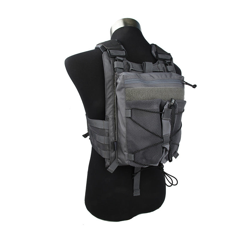 This TMC Helmet Bungee Back Panel for MP20 is made of high quality Cordura fabric. It is slim minimalist back panel for MP20. It also has a hidden hydration pocket and a zippered storage area. Exterior mesh cinch pouch can carry helmet or jacket. This panel only fit TMC MP20 Plate Carrier.