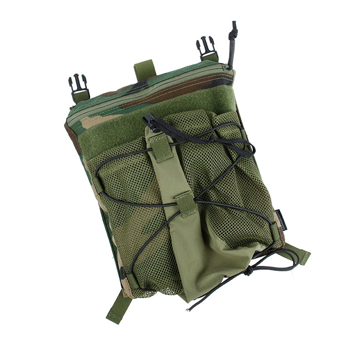 This TMC Helmet Bungee Back Panel for MP20 is made of high quality Cordura fabric. It is slim minimalist back panel for MP20. It also has a hidden hydration pocket and a zippered storage area. Exterior mesh cinch pouch can carry helmet or jacket. This panel only fit TMC MP20 Plate Carrier.