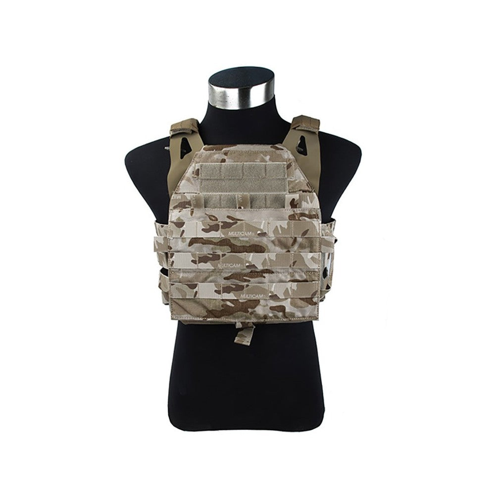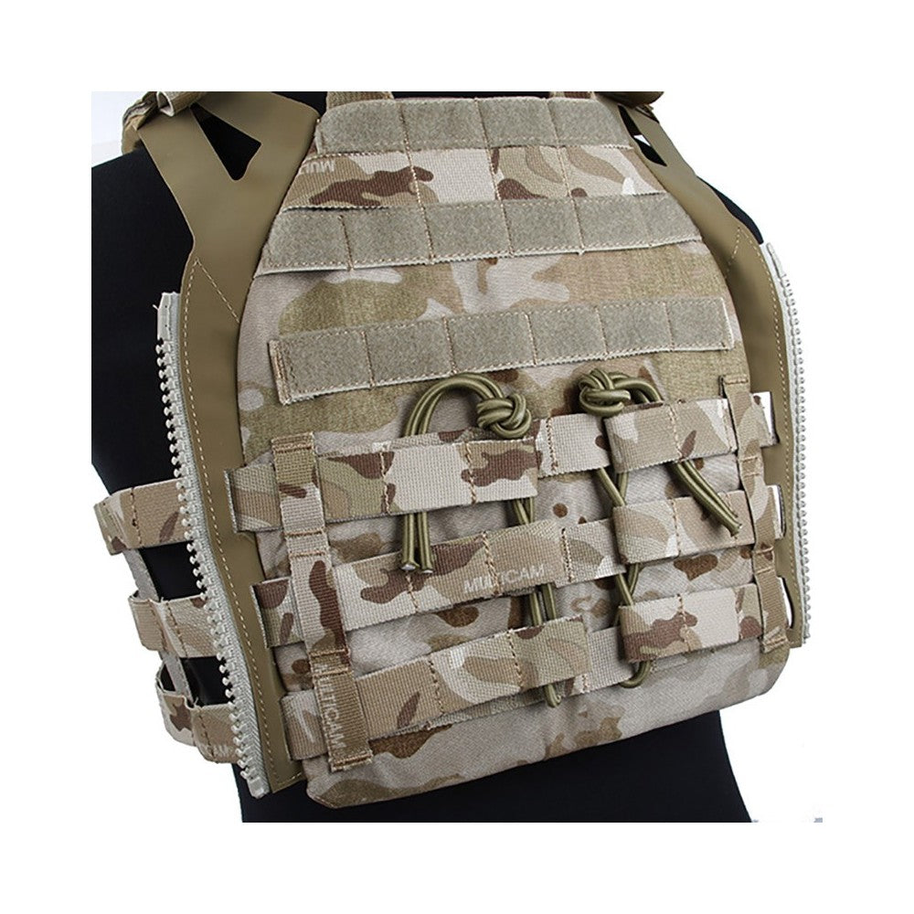 This TMC Jungle Plate Carrier 2.0 Swimmer Cut is a lightweight and minimal armor vest designed for maximum mobility, weight savings, and pack ability. At just over one pound for the entire carrier, this TMC Jungle Plate Carrier 2.0 Swimmer Cut offers a variety of configuration options to suit an operators needs in terms of protection, modularity, and comfort. All Assault Vest System detachable front flaps are compatible (Included Molle platform). It features lightweight cummerbund system with Integrated Attachment System that allows pouches to be mounted on both the inside and outside of the cummerbund. This system sheds unnecessary weight and bulk while improving overall ventilation.