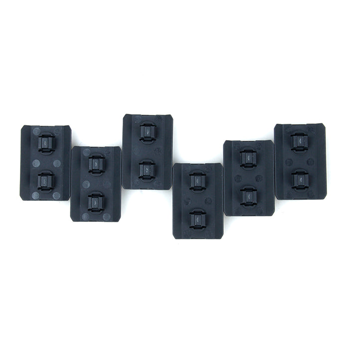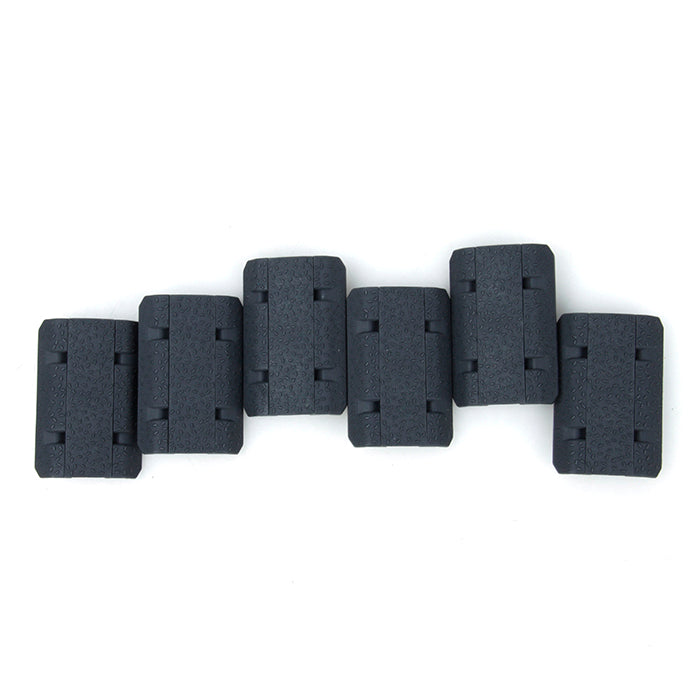 This TMC M-Lock Type 2 Rail Cover Set are low-profile, two-piece covers that install directly onto most M-Lock aluminum hand guards (non polymer). These M-Lock Covers are non-orientation specific which allow the user to mount them in any direction desired without affecting function, it feature beveled contours to minimize potential snagging, utilizes our texture for additional grip, and protrudes only slightly more than 1/8" from the mounting surface to maintain a low-profile. The center locking tab is pre-scored to allow the user to snap off sections and mix and match colors for a customized look.