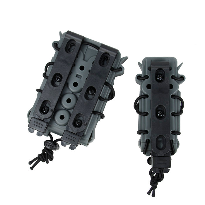 This new TMC Polymer Tactical Assault Combination Mag Holster function much the same as their nylon counterparts. The body and brackets are made with our durable and flexible, proprietary polymer and are laced together with bungee cord for the same versatility our customers have come to expect from the pouch. As with the originals, these pouches grip and retain a wide variety of magazine styles and calibers.