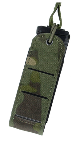 We've developed the ONLY MOLLE compatible pouch with advanced next-generation laser-cut thermoplastic, this material is extremely high strength and flexible. This is important for operational use in either a tropical or cold weather environment. This means that it will not become brittle, break or crack on the user. This TMC Lightweight Raptor Universal Single Pistol Mag Pouch is the thinnest pouch on the market which will allow for more gear to be placed on the gun belt line. We integrated two retention methods with our integrated elastic and optional removable bungee. The pouch design allows for the mag pouches to collapse flat once empty. This is important for offsite movements, urban climbing, vehicle work and low-vis operations. We developed an engineered shape which will allow for quick employment and reinsertion of mags.