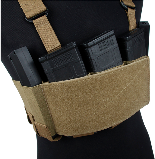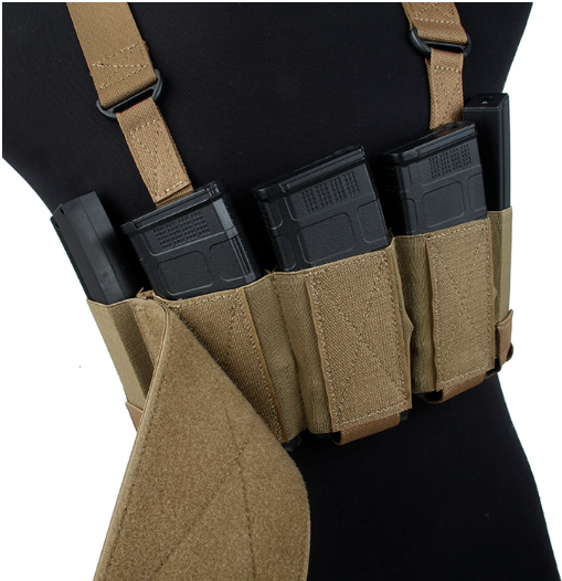TMC Low Profile Ready Chest Rig is a lightweight, low-vis chest rig with elastic pockets for magazines, tools, medical, and other equipment. Designed around an elastic cummerbund combined with an adjustable X harness. It comes ready to roll right out of the box, simply adjust it to fit you and youre good to go. Affordable. Comfortable. Stable. Concealable. It holds three 5.56 STANAG magazines in the front, and then includes on each side of the rig: one small multitool cell, followed up by a STANAG-sized cell, and then a larger cell that fits our EDC ITRK perfectly, or other general-purpose items. The Ready Rig is One Size Fits Most due to its ability to be adjusted both in the cummerbund and in the harness straps.
