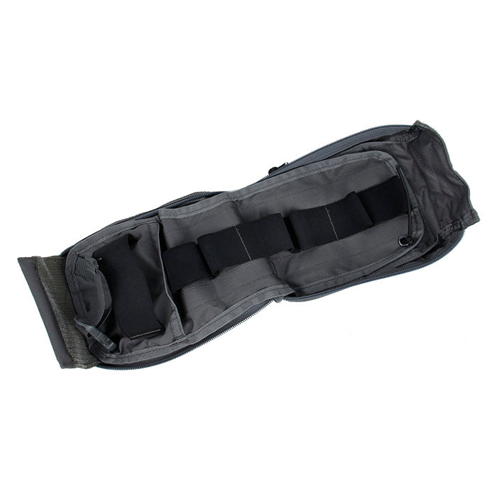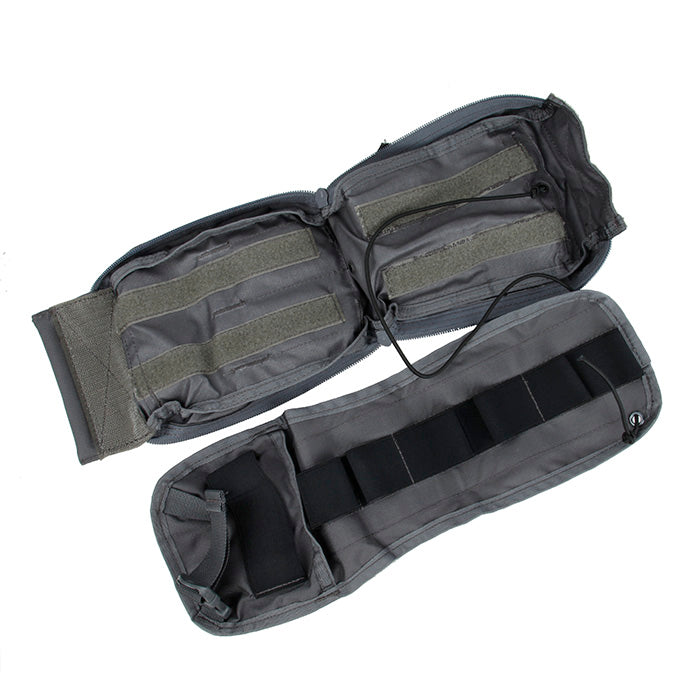This TMC Tactical Cutaway IFAK Medical Pouch has two external tool pockets with a hook and loop flap. Top grab handles opens bag instantly. The interior features a rip away releasable platform that will hold all your supplies while being retained to the primary pouch via a bungee cord.